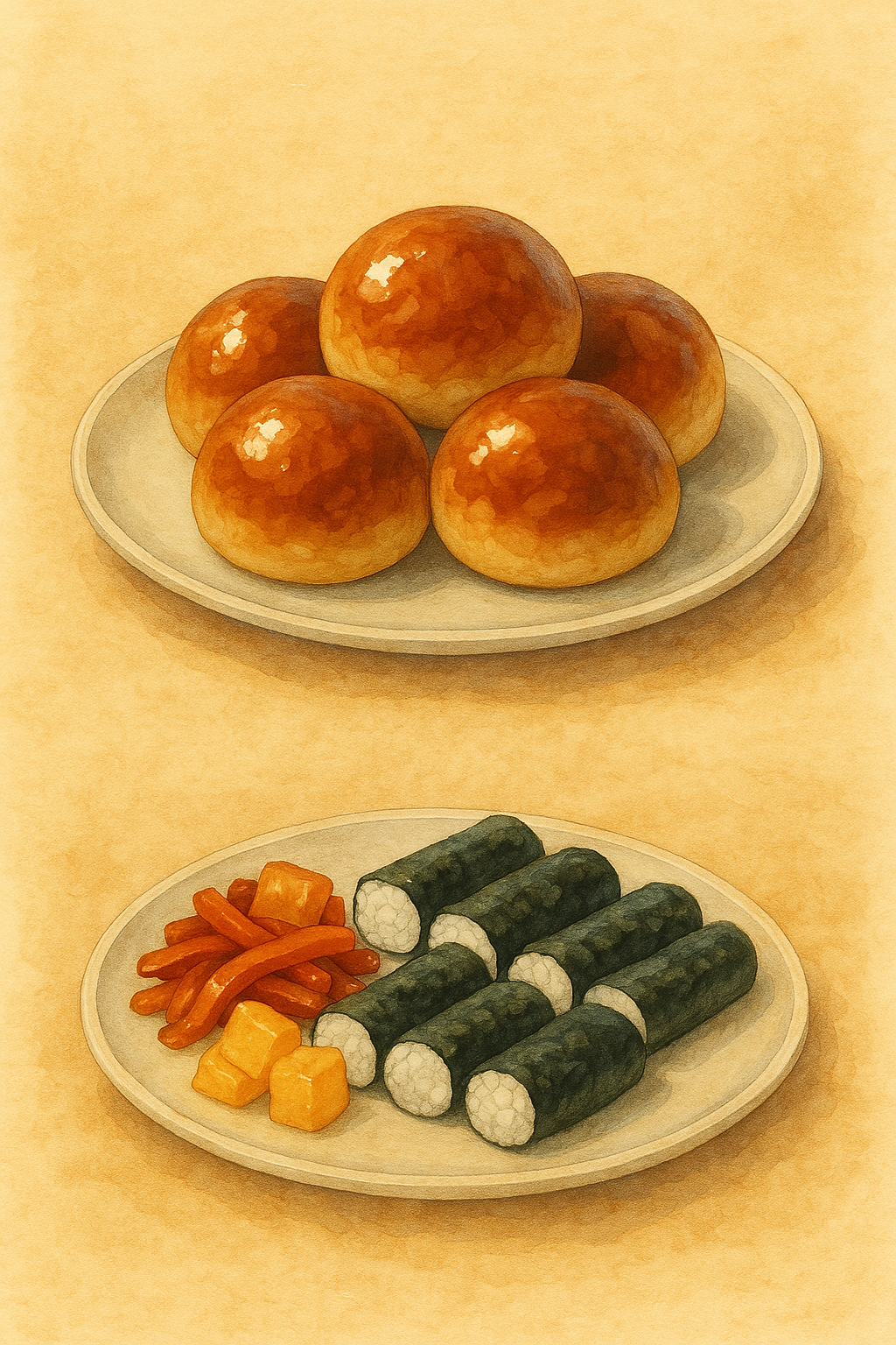 충무김밥은 새콤한 오징어무침과 함께 먹는 특이한 김밥으로, 통영에서 원조 맛집을 찾아보는 재미가 있어요.