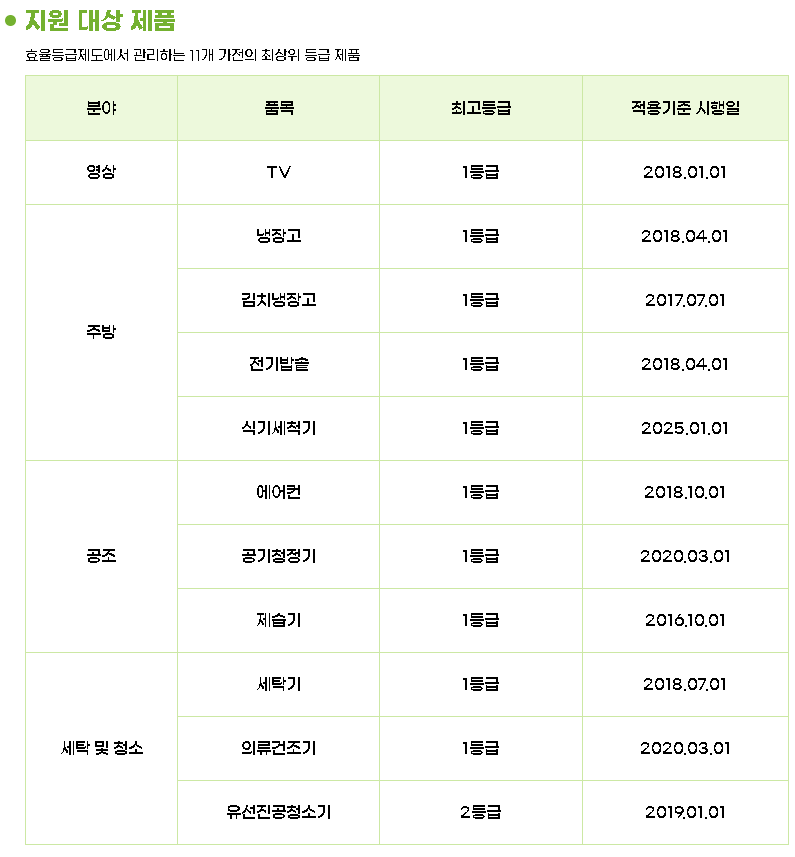 ✔️ 에너지소비효율 1등급 제품만 환급 대상