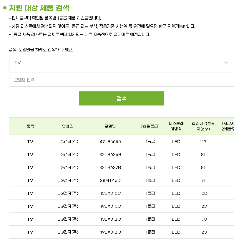 | 조건 | 에너지소비효율 1등급 제품 |